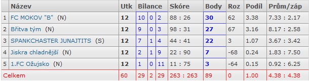 | 1. FC Ožujsko vs Jiskra chladnější | 1:2 | Hackel |