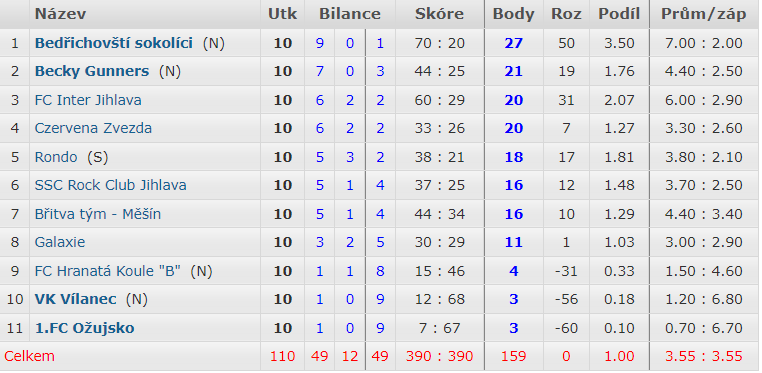 | Břitva tým - Měšín vs 1. FC Ožujsko | 13:1 | Kamenár |