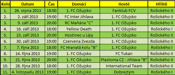 ZÁPASY TÝMU 1. FC OŽUJSKO