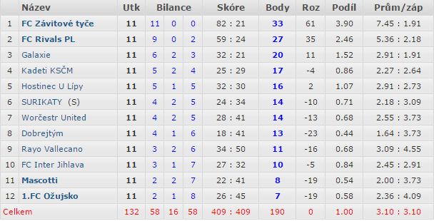 1. FC Ožujsko vs FC Rivals PL | 6:8 | 2x Uher, 2x Niederle, Wolfli, Krosser |