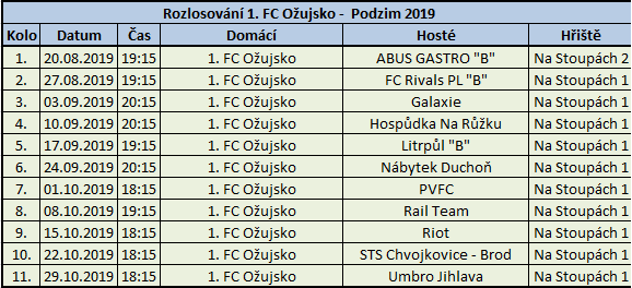 ZÁPASY TÝMU 1. FC OŽUJSKO