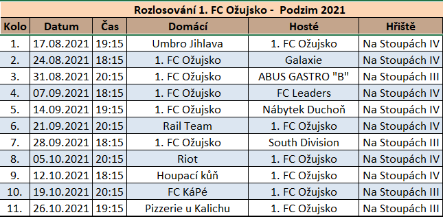ZÁPASY TÝMU 1. FC OŽUJSKO