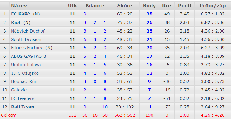 1. FC Ožujsko vs FC Leaders | 9:3 | 5x Daniel Vaněk, 2x Petr Vaněk, Mikeš, Kosak |