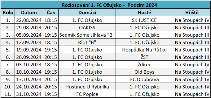 ZÁPASY TÝMU 1. FC OŽUJSKO