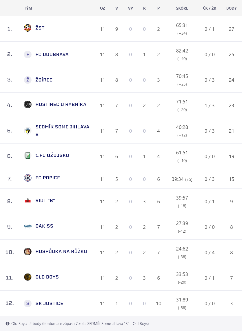 | 1. FC Ožujsko vs Hospůdka Na Růžku | 5:6 | 3x Brada, Vaněk Daniel, Vaněk Petr |