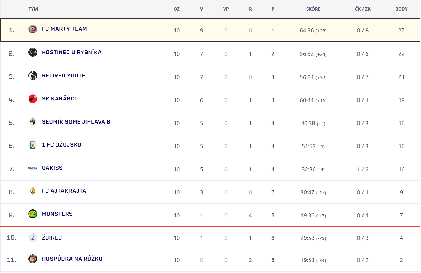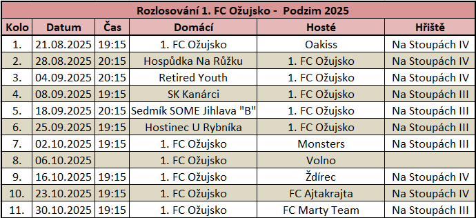 | Hospůdka Na Růžku vs 1. FC Ožujsko | 2:9 | 3x Kůta, 3x Bártů, Bednárik, Mikeš, Brada |